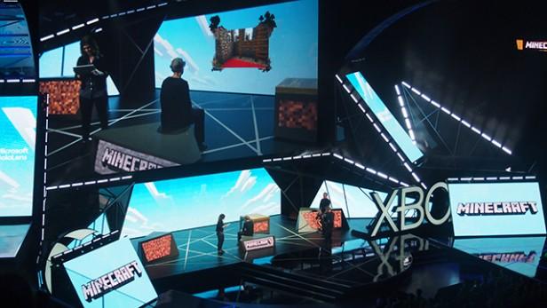 微软花了25亿美元收购Minecraft开发商Mojang,第一款面向Hololens的Minecraft游戏可以让你在实体桌面上投放图像,操作很简单,你只需要说一句“给我创造一个世界”就行了。随后你就可以用手来操作项目和角色。当你完成这一切时,其它人可以同时利用微软Surface平板沉浸在Minecraft世界中。
