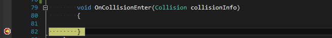 为了验证碰撞器与触发器的区别,现设计一个简单的游戏,让小汽车与小球发生碰撞。新建一个C#脚本文件,把它拖给小汽车对象,双击该脚本文件进入脚本编辑器,在该脚本中加入如下两个方法,并分别设置一个断点: